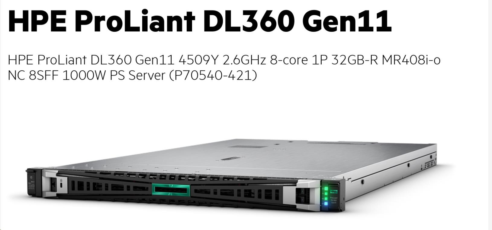 Popis HPE PL DL360g11 4509Y (2.6G/8C) 1x32G (P64706) MR408i-o/4G 8-10SFF 1x1000W 2x1G