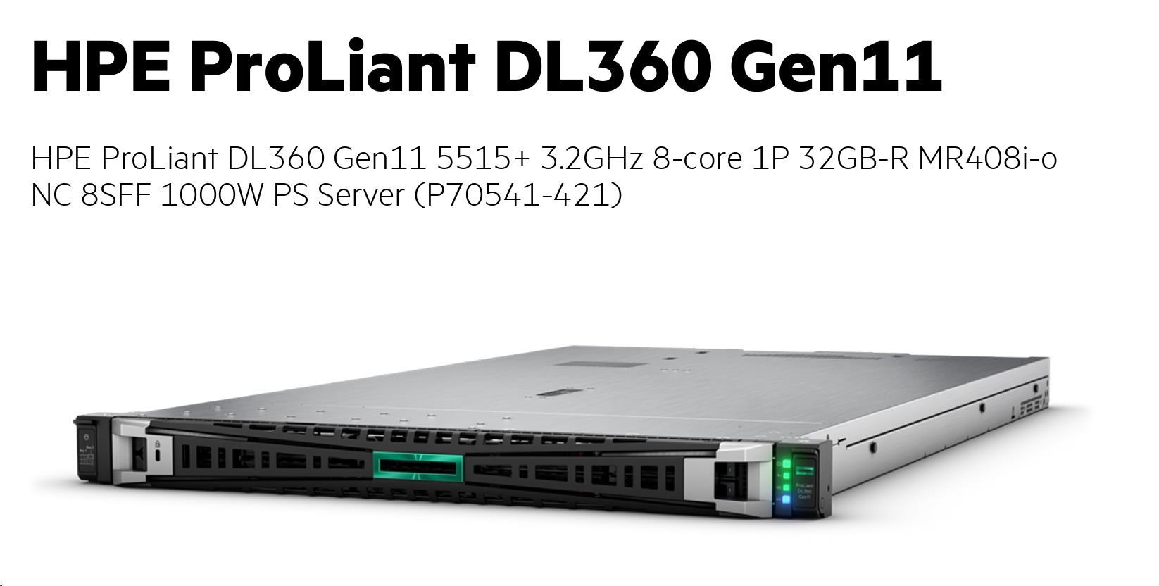 Model Name HPE PL DL360g11 5515+ (3.2/8C/165W) 1x32G MR408i-o/4G 8-10SFF 1x1000W 2x10G-T NBD333 1U