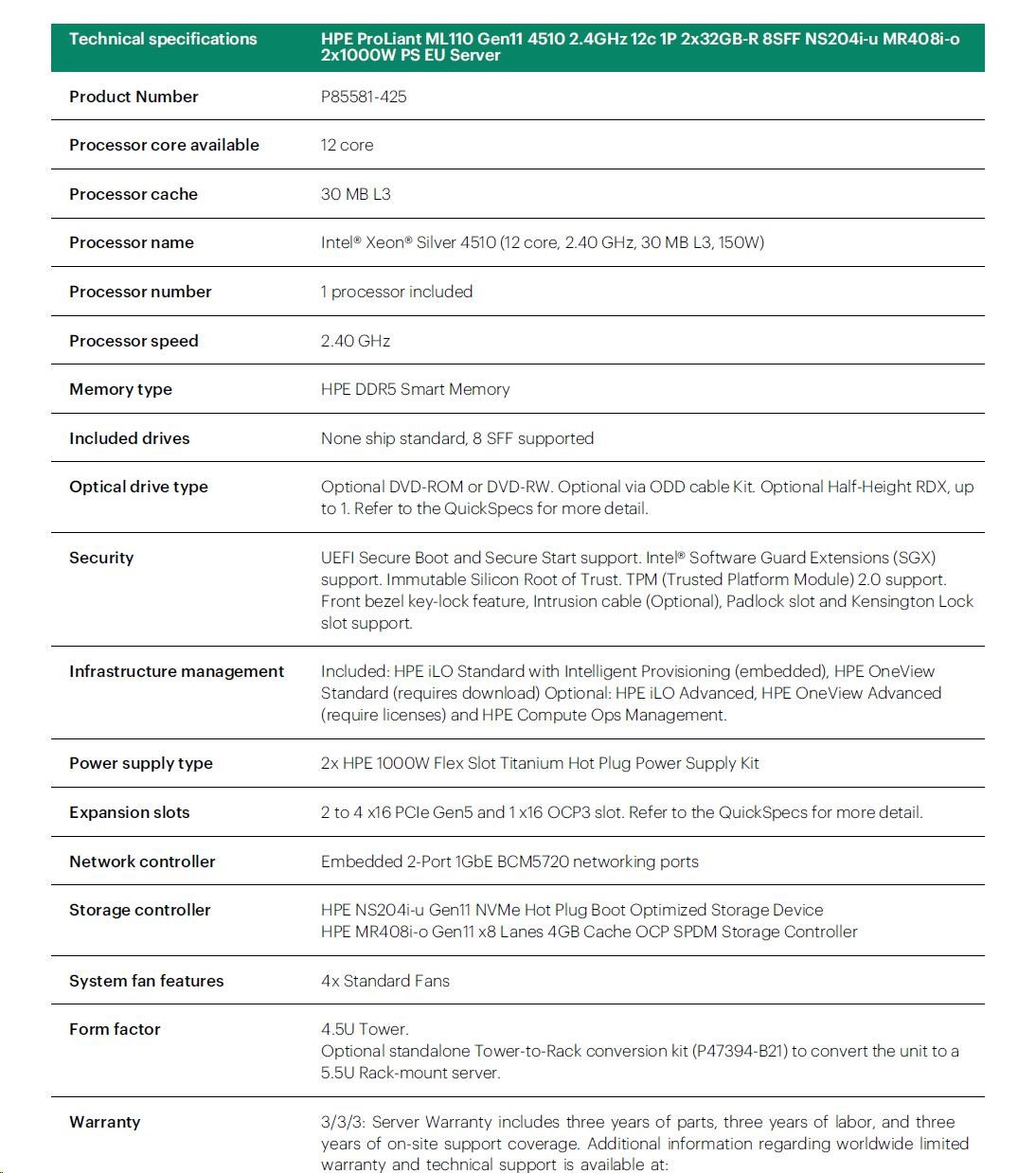 Provedení serveru:Tower; Výrobce CPU:Intel; Maximální počet procesorů:1; Řada procesorů:Intel 12 Core Xeon; SSD Kapacita (GB):480; Model procesoru:Intel Xeon 4510; Velikost paměti RAM (GB):64; Maximální paměťová kapacita serveru (GB):3072; Maximální počet slotů PCIe:5; Maximální počet HDD v serveru:16; Hot-plug cage pro HDD:2.5" SFF; RAID:1, 5, 10, 50.Více