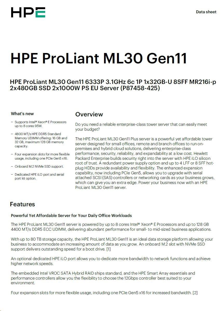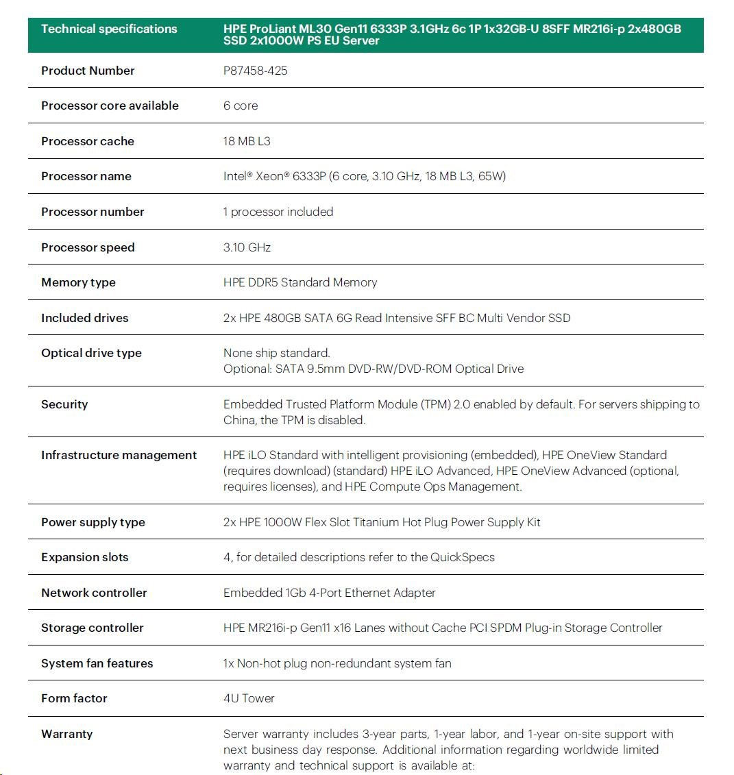 Provedení serveru:Tower; Výrobce CPU:Intel; Maximální počet procesorů:1; Řada procesorů:Intel 6 Core Xeon; SSD Kapacita (GB):480; Model procesoru:Intel Xeon E-2436; Výkon CPU dle PassMark:21708; Velikost paměti RAM (GB):32; Maximální paměťová kapacita serveru (GB):128; Maximální počet slotů PCIe:4; HDD Kapacita (GB):2; Maximální počet HDD v serveru:8.Více