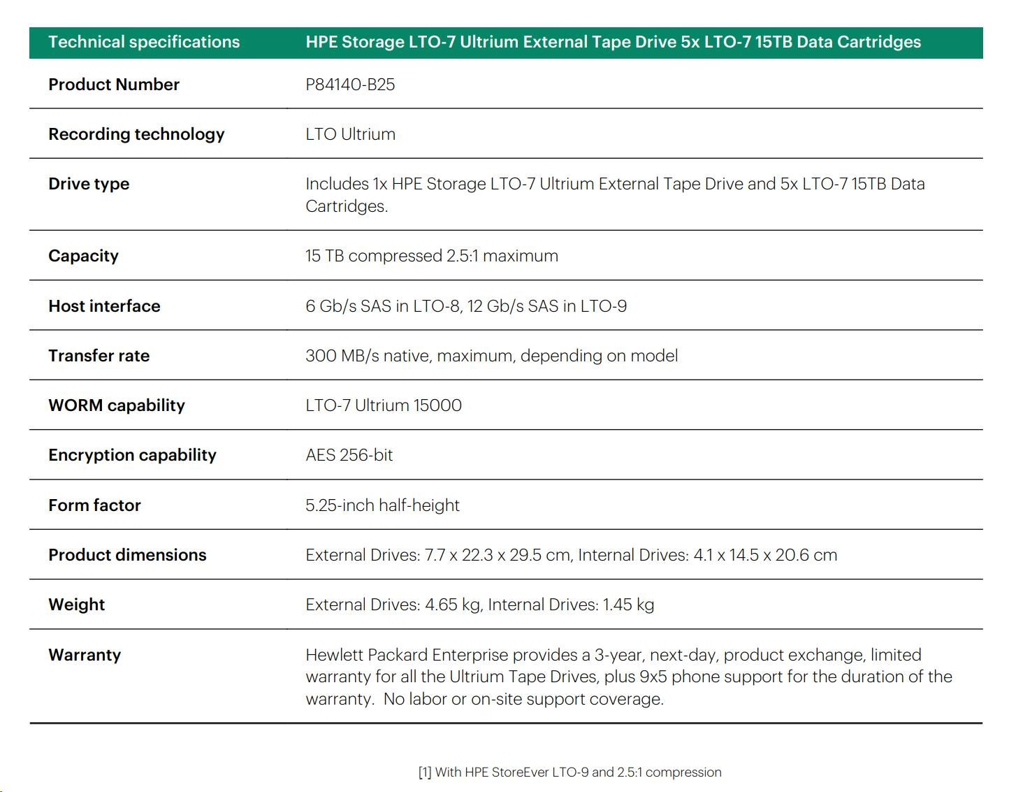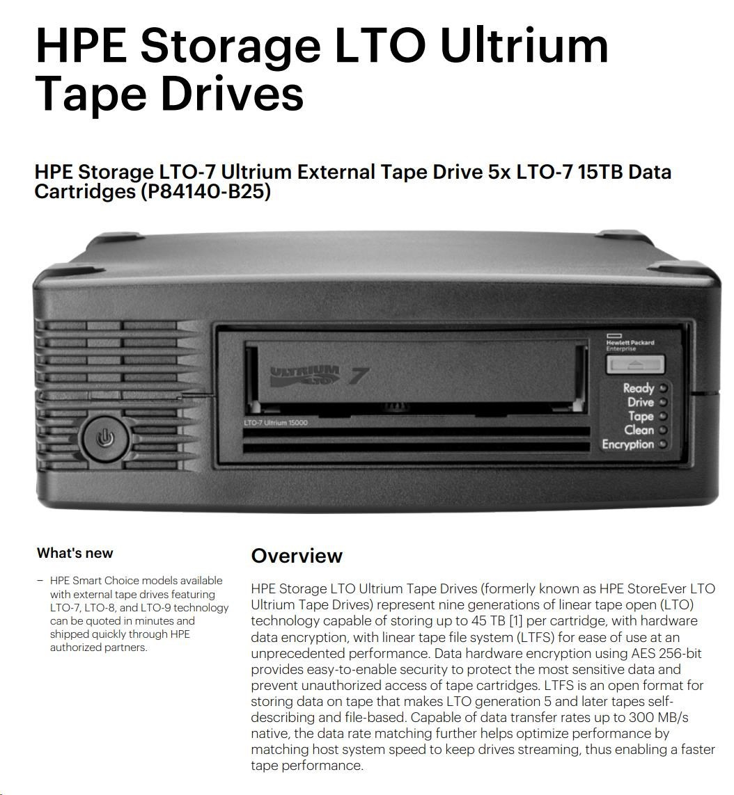 HPE Storage LTO-7 Ultrium External Tape Drive 5x LTO-7 15TB Data Cartridges