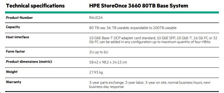 Popis HPE StoreOnce 3660 80TB Base System (2U with10 x 8 TB disks)