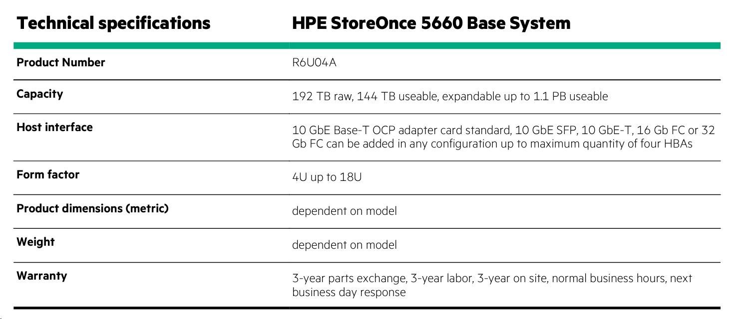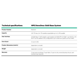 HPE StoreOnce 5660 System with 2 x 1.9TB SSDs for OS and 8 x 6.4 TB SSD disks for Data Cache. Hewlett Packard Enterprise, 3000 Hanover Street Palo Alto, California 94304 United States, https://www.hpe.com/us/en/contact-hpe.html