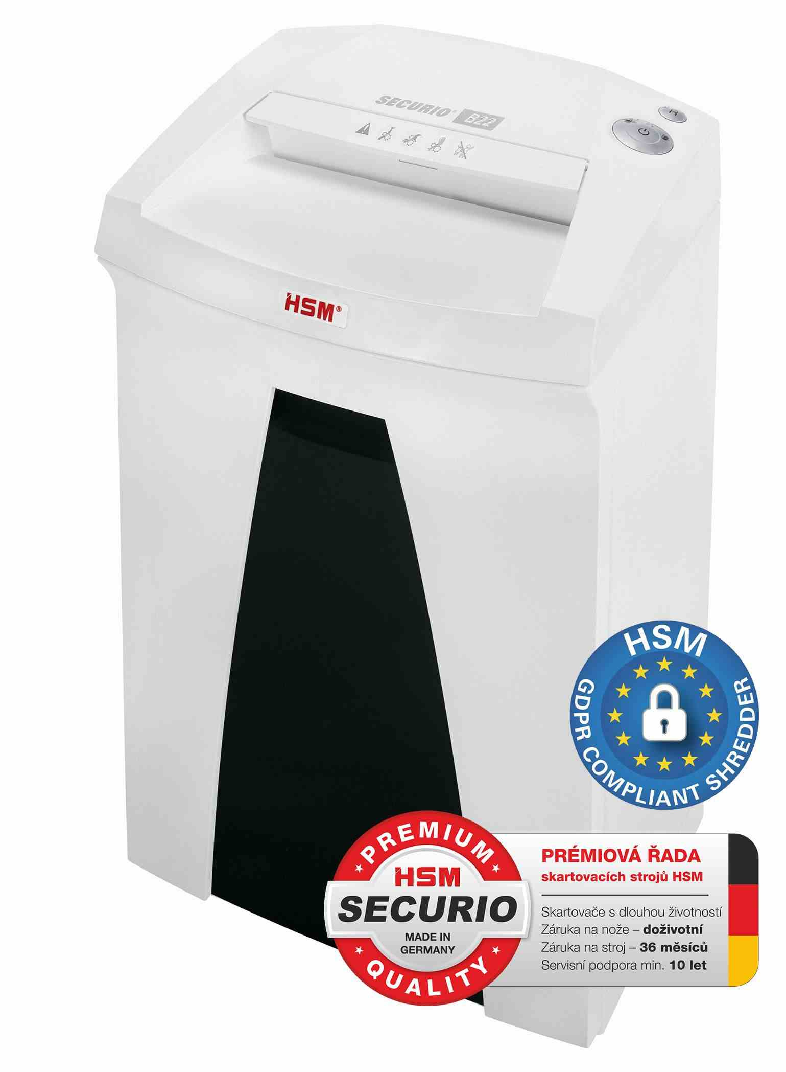 HSM skartovač Securio B22 (řez: Kombinovaný 3,9x30mm | vstup: 240mm | DIN: P-4 (3) | papír, sponky, plast. karty )
