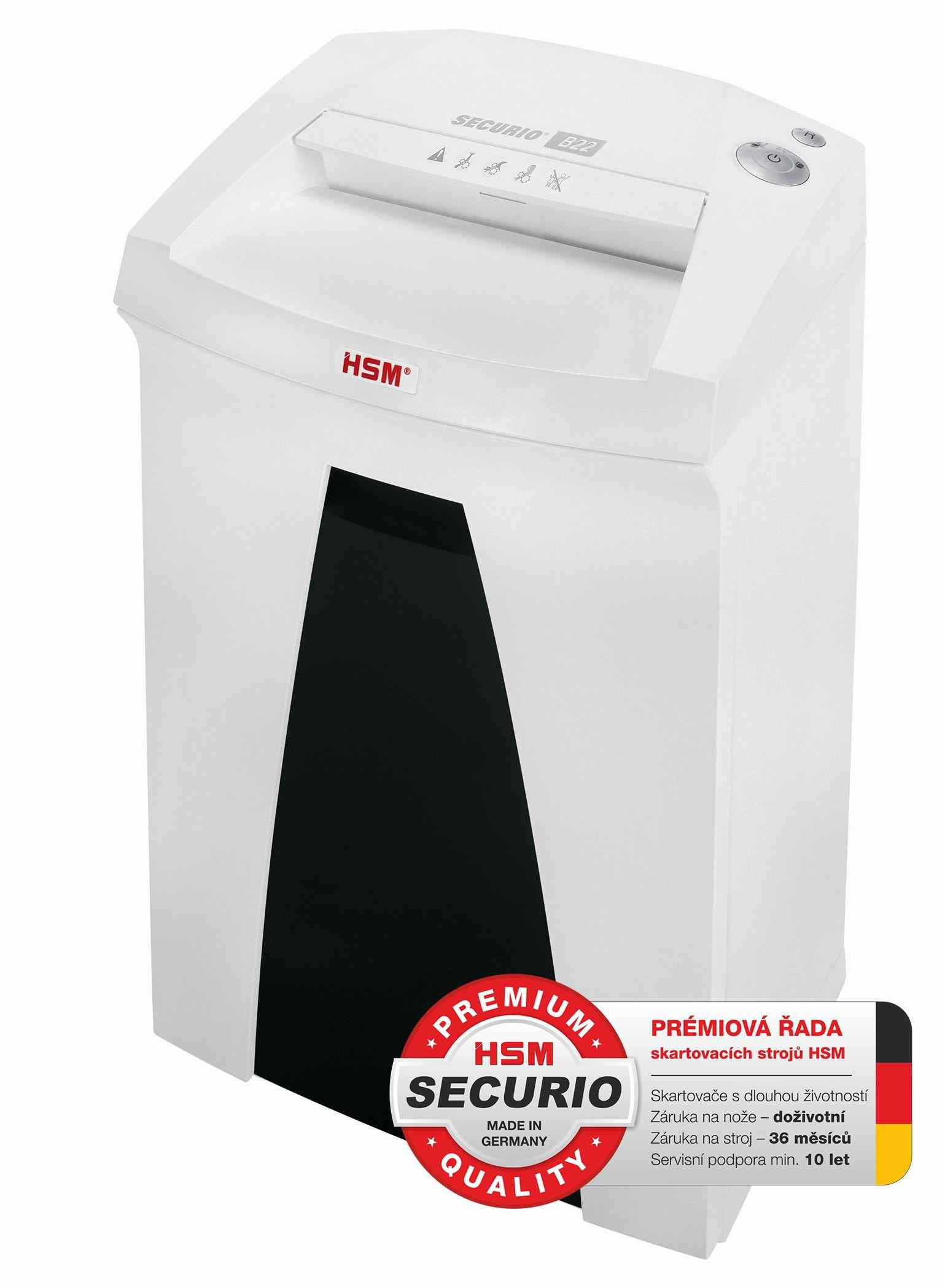 HSM skartovač Securio B22 (řez: Podélný 3.9mm | vstup: 240mm | DIN: P-2 (2) | papír, sponky, plast. karty )