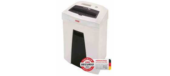 Skartovací stroj nové řady HSM Securio ke stolu. Má vysoký výkon, moderní vzhled, nízkou hladinu hluku a snadné ovládání. Motor je před přehřátím chráněn tepelnou pojistkou, která omezuje dobu chodu. Konstukce je dvoudílná, se snímatelnou hlavou ze zásobníku. Manipulaci usnadňuje praktické madlo. Vyspělá elektronika umožňuje úsporu elektrické energie. Stroj skartuje papír i s kancelářskými sponkami a plastové karty. Záruka na stroj je 60 měsíců, doživotní záruka na nože. Stroj je vyráběn v Německu, s podporou dodávky náhradních dílů pro případ opravy.. , ,