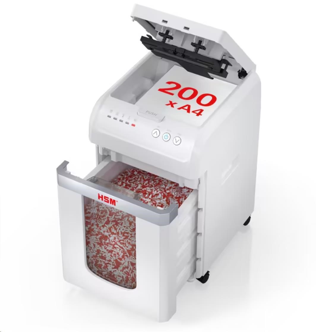 Skartovací stroj s vyspělým automatickým podavačem papíru.
