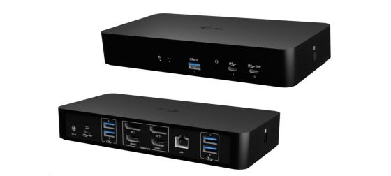 Tato výkonná kancelářská dokovací stanice podporuje superrychlé USB Gen 2 porty s funkcí rychlého nabíjení. Umožňuje výstup až na dva externí monitory s vysokým rozlišením až 4K. Lze ji použít s prakticky jakýmkoliv notebookem, protože podporuje všechny běžné typy připojení: USB-A, USB-C, USB4 a Thunderbolt 3/4/5, a zároveň je kompatibilní se všemi moderními operačními systémy.