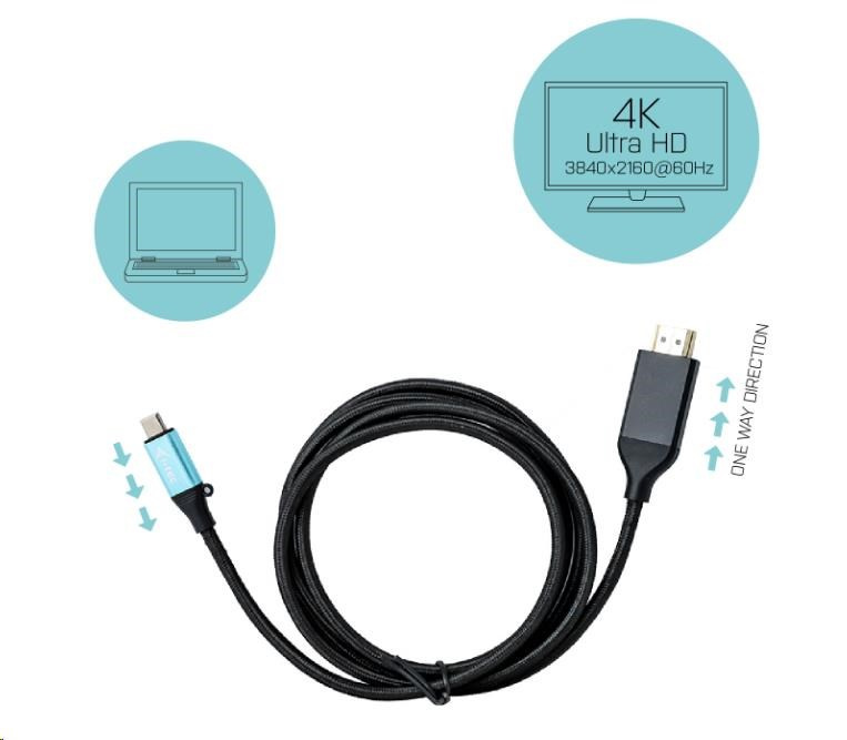 Rozšiřte svou pracovní plochu o externí HDMI monitor prostřednictvím USB-C nebo Thunderbolt 3 portu. Tento kabelový adaptér podporuje přenos 4K Ultra HD rozlišení až 3840 x 2160 pixelů, včetně audio signálu.