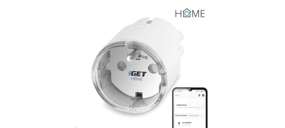 Chytrá zásuvka ovládaná přes WiFi, kompatibilní s aplikací iGET HOME, Google Assistant a Amazon Alexa, měření spotřeby energie, max. zatížení 3680 W, aplikace pro Android a iOS zdarma v češtině, nastavení časovačů, statistiky.