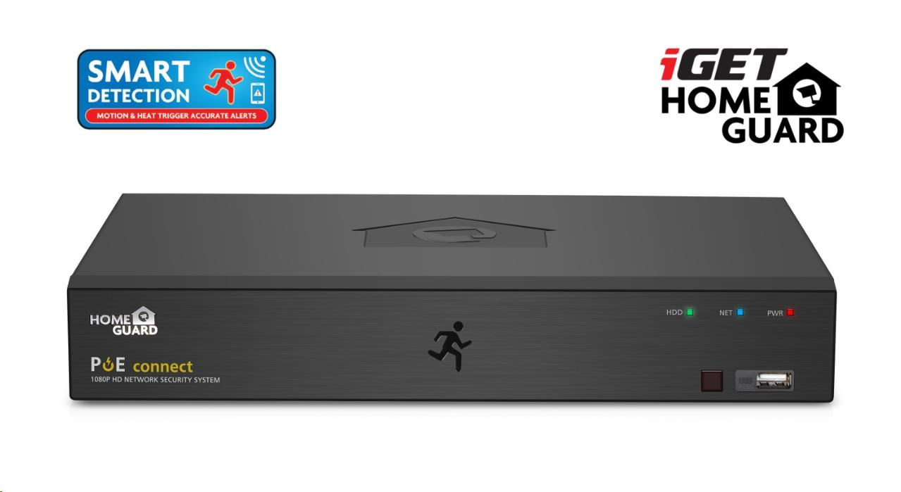 Kamerový systém iGET HOMEGUARD HGNVK85304 s PoE napájením (pro napojení kamer k rekordéru se využívá univerzální Ethernet kabel Cat.5e, Cat.6 nebo vyšší). Po tomto kabelu prochází data i napájení kamer. Systém navíc vyniká inovativní SMART detekcí pohybu. 8-kanálový FullHD rekordér NVR s PoE + 4 ks FullHD 1080p PoE barevných venkovních kamer iGET HOMEGUARD HGNVK930CAM. Pozice pro 1x HDD SATA, konektory 9x LAN, 2x USB, VGA, HDMI, Audio RCA, komprese H.265/264, voděodolné kamery IP66 s nočním viděním s dosahem 30 m, rozlišení 1080p (1920 x 1080), mobilní (Android/iOS) a PC (Windows/MAC) aplikace pro vzdálené online sledování + připojení k TV/monitoru. Dálkový ovladač, USB myš, 4x 18m Ethernet kabel, varovné nálepky, manuál v CZ/SK/PL..