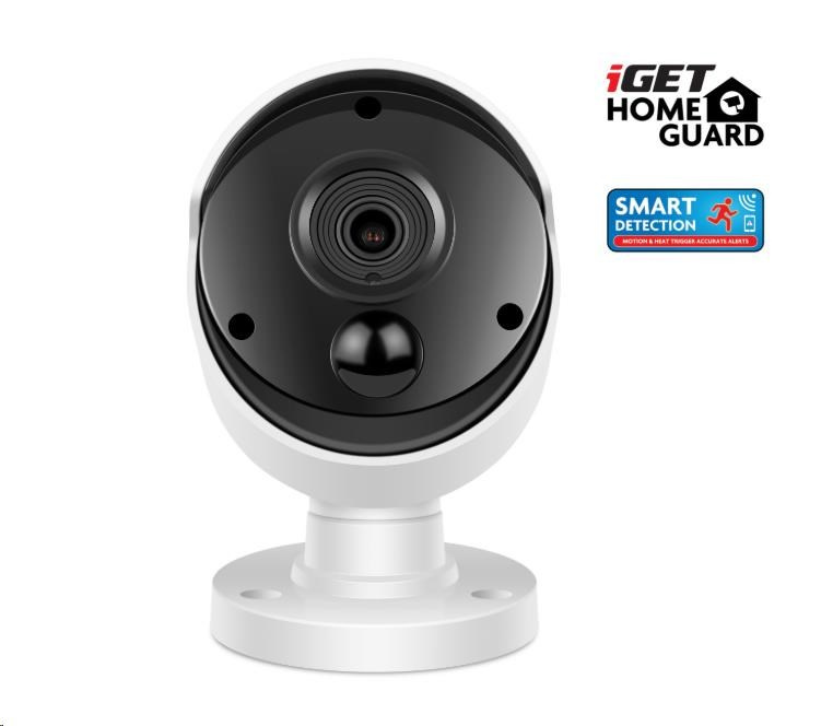 Venkovní odolná FullHD kamera iGET HOMEGUARD HGNVK930CAM s PoE napájením a inovativní SMART detekcí pohybu pomocí vestavěného PIR čidla, je příslušenství ke kamerovému setu iGET HOMEGUARD HGNVK85304. Rozlišení FullHD 1080p (1920 x 1080) pro video ve velmi vysoké kvalitě, denní i noční provoz, IR noční přisvětlení až 30 m, snímač 1/2.7" CMOS, ohnisková vzdálenost 3,6mm, odolnost proti prachu a vodě IP66. Úhel záběru 92°. Úhel záběru PIR čidla 120° na vzdálenost 7m.
