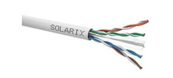 Tento instalační kabel z produktové řady Solarix - kategorie 6 s označením SXKD-6-UTP-PVC je vysoce kvalitní kabel určený pro horizontální rozvody strukturované kabeláže, který bez problémů splňuje a rovněž převyšuje požadavky specifikované v mezinárodních standardech ANSI/TIA 568, ISO/IEC 11801 a EN 50173 pro kategorii 6 a třídu vedení Class E, včetně všech nejnovějších dodatků. Kabely Solarix - kategorie 6 jsou dodávány ve stíněné i nestíněné verzi s různým typem pláště - tj. PVC (třída reakce na oheň Eca), LSOH (třída reakce na oheň Dca s2 d2 a1) nebo UV stabilní PE (třída reakce na oheň Fca). Vodiče těchto kabelů jsou vyrobeny z velmi kvalitního měděného drátu o velikosti AWG 23. Jednotlivé páry jsou odděleny plastovým křížem. Stejně jako ostatní kabely Solarix, je i kabel SXKD-6-UTP-PVC značen metráží po 1 m v rozsahu od 0 do 305 m. Kabel je dodáván ve vysoce odolném třívrstvém leštěném kartónovém boxu, na kterém jsou uvedeny všechny nezbytné produktové informace, včetně čárových kódů, výrobní šarže, popisu a nejdůležitějších technických parametrů.
