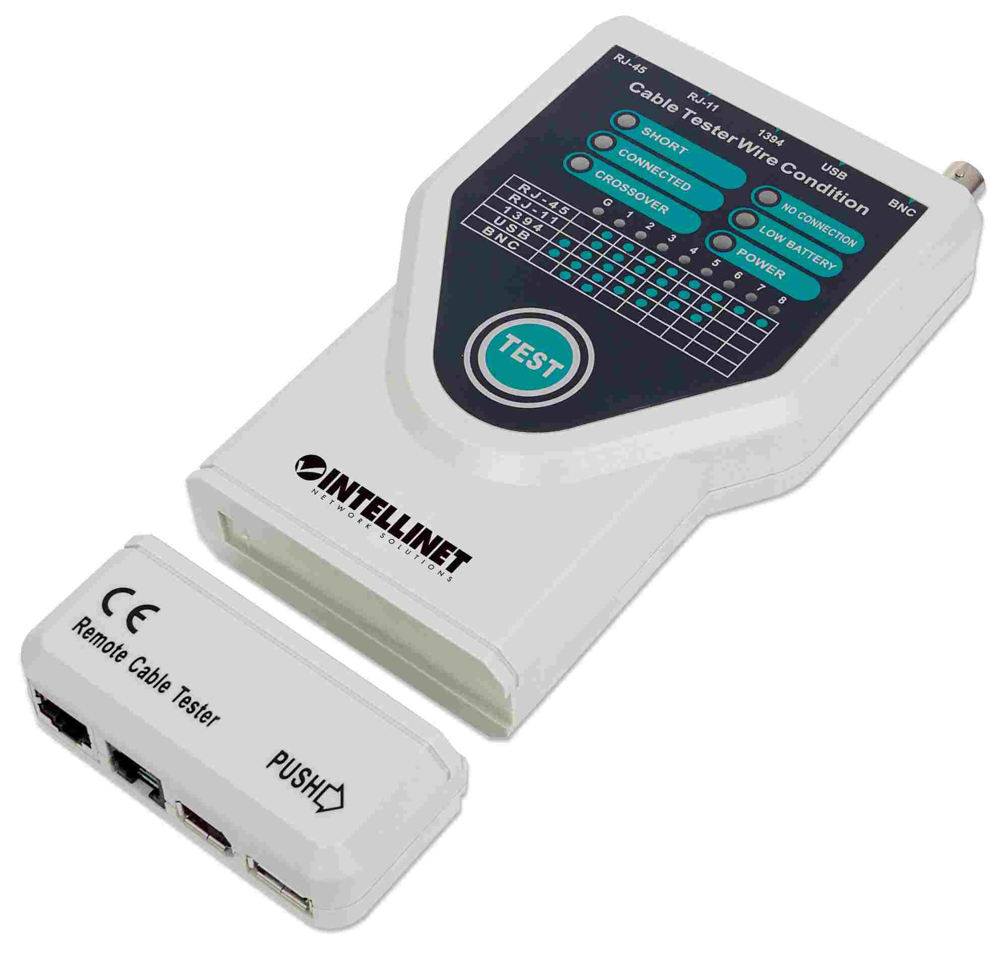 Popis Intellinet Cable Tester, 5-in-1, RJ45, RJ11, USB, Firewire, BNC