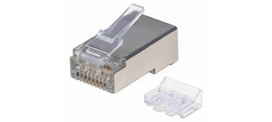 Intellinet konektor RJ45, Cat6A, stíněný STP, 15µ, drát, 90 ks v nádobě