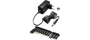 Univerzální napájecí adaptér PremiumCord ppadapter-107 s nastavitelným výstupním napětím 3–12 V DC a maximálním proudem 300 mA. Vhodný pro napájení různých elektronických zařízení.