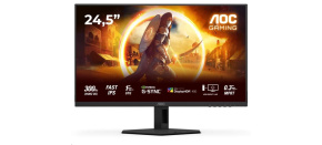 Použití:Kancelářský, Herní; Rozlišení displeje:1920x1080 (Full HD); Úhlopříčka displeje ("):24.5; Vlastnost:Rovný; Výbava:VESA montáž, Redukce blikání (flicker-free), Redukce modrého světla; Rozhraní vstup:HDMI, DP; Rozhraní výstup:3,5 mm Jack; HDMI počet:2; HDMI verze:2.0; DP počet:1; DP verze:1.4; Doba odezvy (ms):1; Barevná hloubka (bit):8.
