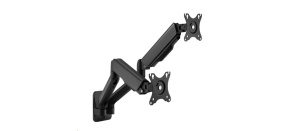 Zavěšení 2 monitorů 17-30", nezávislé nastavení každého monitoru, výškové polohování 140-400mm, otáčení do stran +/-180°, naklápění +85°/-30°, vzdálenost od úchytu 0-530mm, pivot +/-360°, VESA 75x75 a 100x100, nosnost 18kg.