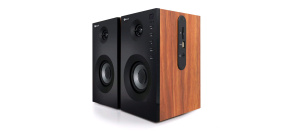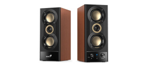 Kompaktní dřevěné reproduktory GENIUS SP-HF180 v konfiguraci 2.0 nabízejí čistý stereofonní zvuk s výkonem 6 W, jednoduché připojení přes 3,5mm jack a praktické napájení z USB.