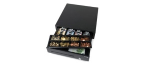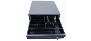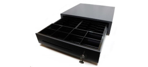 cash drawer, front opening, dimensions (WxHxD): 410x114x415mm, 8 note compartments (vertical), 8 coi