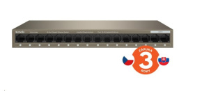 Provedení:Desktop; Funkce:QoS (Quality of service), VLAN (virtual local area network), Web management/Smart switch; Technologie:Gigabit Ethernet 1000Mbps; Počet portů LAN:16; Přenosová rychlost LAN (Mb/s):1000; Maximální počet portů:16; Management:Web.