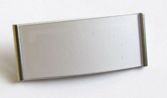 Mírně vyklenutá, magnetická jmenovka s okénkem o rozměru 79×31 mm. Vnitřní rozměr 73×30 mm. Část jmenovky určená k popisu je chráněna čirým tuhým plastem s ochrannou snímatelnou fólií. Provedení lesklý hliník – dodává jmenovce luxusní vzhled. Možnost uchycení na oděv pomocí magnetu (40×18 mm). Magnet je dostatečně silný k tomu, aby jmenovku přes oděv udržel.. EuroSupplies, Street Ippokratous 62 & Papaxristou Spata 19004, Attica Řecko, info@eurosupplies.com