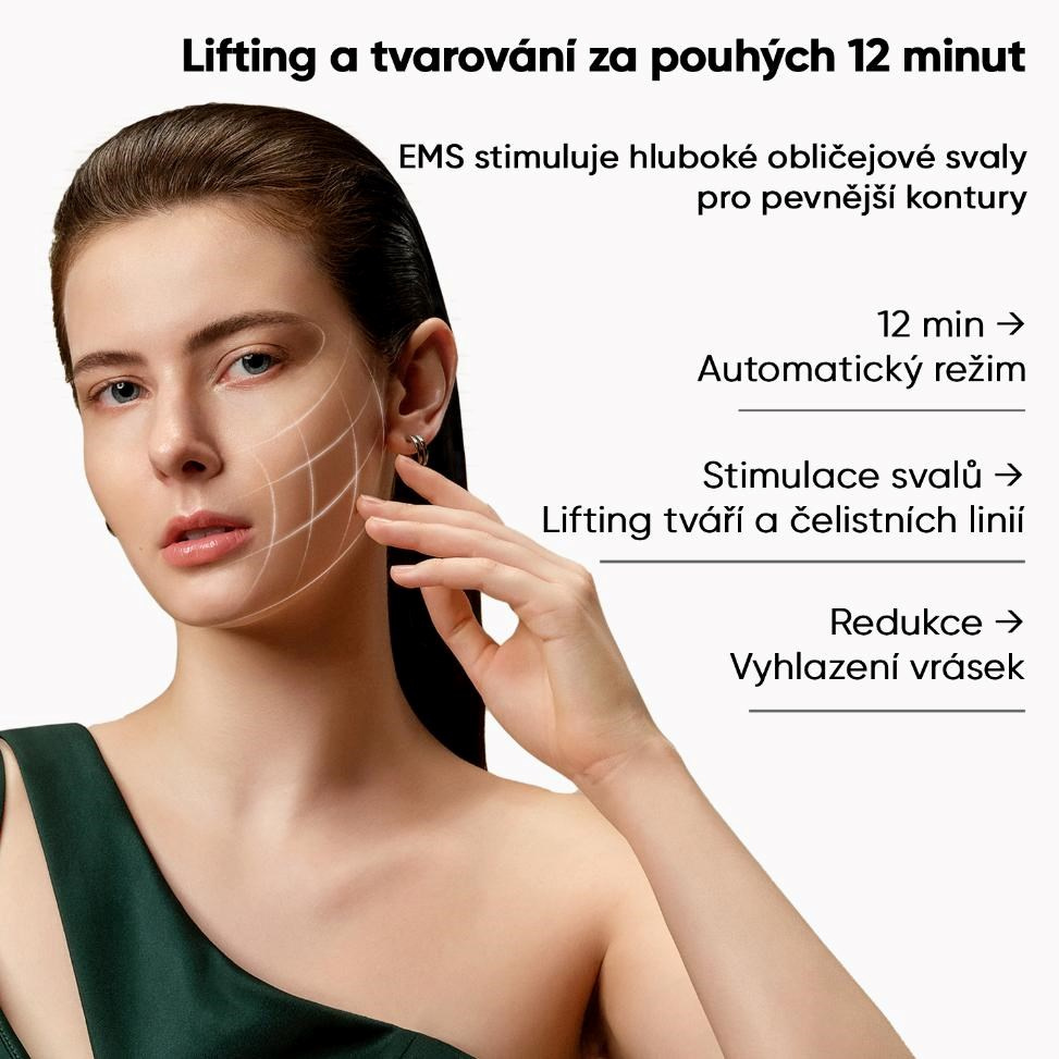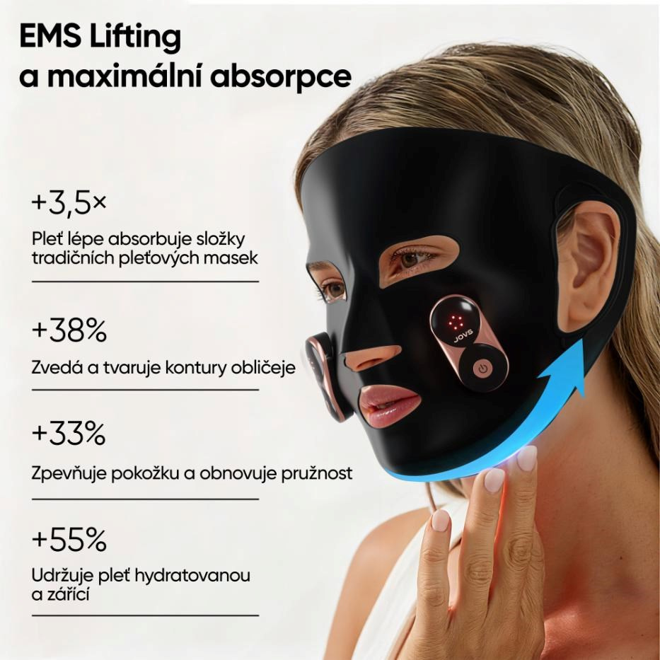 JOVS EMS liftingová maska představuje revoluční způsob péče o pleť, který přináší výsledky profesionálních ošetření přímo do vašeho domova – bez námahy, bez bolesti a bez návštěvy salonů. Díky pokročilé technologii EMS (elektrická stimulace svalů), běžně používané v rehabilitaci, maska stimuluje hluboké svalové vrstvy obličeje, podporuje regeneraci kolagenu, zvyšuje pevnost a pružnost pleti a modeluje ochablé kontury. Zmírňuje nosoretní linie a dodává pleti viditelně mladší a svěžejší vzhled už po několika týdnech. Stačí ji nasadit – a zatímco odpočíváte nebo pracujete, vaše pleť prochází intenzivním omlazením.
