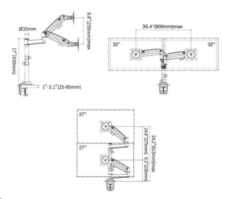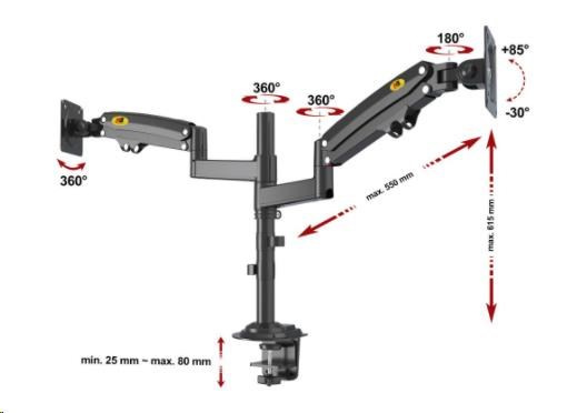 Kancelářský držák 2 monitorů Fiber Mounts H180B