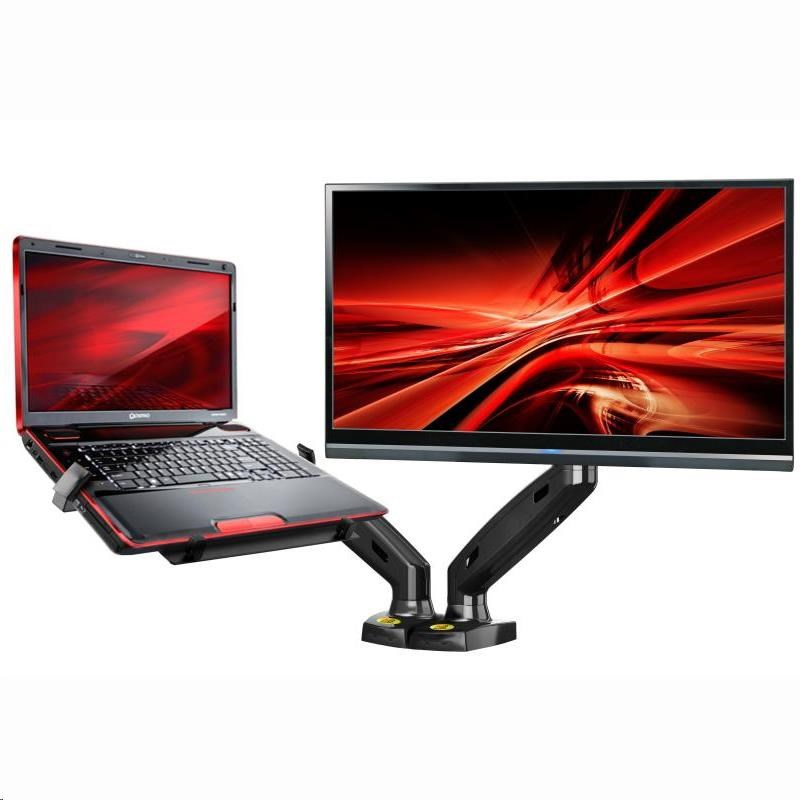 Špičkový stolní držák do kanceláře, firmy nebo domácnosti pro zavěšení monitoru a notebooku. Držák umožňuje kompletní polohovatelnost jak monitoru tak i notebooku - otáčení do stran, náklon, délkové a výškové nastavení, korekci roviny. Ramena mají systém pro vedení kabeláže. Uchycení je možné na všechny typy stolů nebo desek o síle 10mm až 100mm, jsou možné 2 způsoby uchycení - na kraj stolové desky nebo kamkoliv do prostoru (ukotvení skrz stolovou desku - nutné provrtání). Stolní držák pro uchycení notebooku (laptopu) a monitoru Fiber Mounts 764F160 je vynikající kvality, velmi pěkného designu a poskytujeme na něj záruku 5 let.