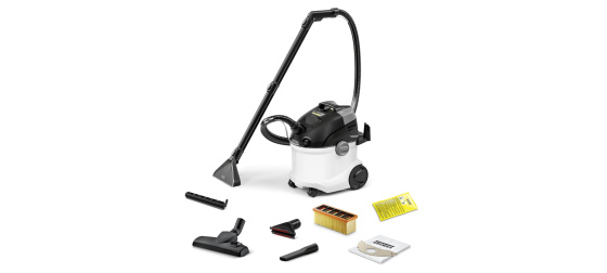Hloubkový čisticí účinek v kombinaci s ergonomickým designem a multifunkčností: Tepovač SE 5 s atraktivním designem zajišťuje hygienické čištění mnoha textilních povrchů, jako jsou koberce, čalounění a čalouněný nábytek, koberce, schody s koberci, matrace, závěsy na stěnách a autosedačky. Osvědčená technologie rozprašování od společnosti Kärcher přináší nejlepší výsledky čištění: čistá voda a čistič koberců Kärcher RM 519 se pod tlakem nastříkají hluboko do textilních vláken a poté se spolu s uvolněnou špínou vysají zpět - ideální pro rodiny, alergiky a domácnosti s domácími mazlíčky. SE 5 je multifunkční výrobek 3 v 1, který lze díky rozsáhlému příslušenství používat i jako plnohodnotný vysavač na mokré a suché vysávání. Další funkce výbavy: 2nádobový systém s vyjímatelnou nádrží na čistou a špinavou vodu, ergonomické madlo pro snadné přenášení a praktické uložení příslušenství na přístroji. Po použití se zařízení snadno čistí, což zajišťuje dlouhou životnost výrobku.