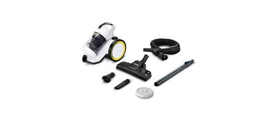 Skutečně kompaktní bezsáčkový vysavač, to je Kärcher VC 3. Disponuje výkonem 700 W a multicyklónovou technologií. Průhledná nádoba na prach má objem 0,9 litrů a dovoluje rychlou vizuální kontrolu. Vysavač je ideální pro menší byty a domácnosti. Použití je vhodné pro všechny typy podlahy včetně koberců. Štěrbinová hubice pomůže s úklidem odlehlých koutů a těžko dostupných míst. Hlavice s měkkým kartáčem je vhodná pro jemné povrchy a čalounění.