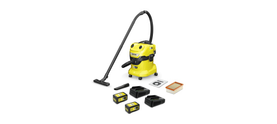 Výkonný a přenosný: 36voltový motor vysavače na mokré a suché vysávání WD 4-18 S Dual Battery je napájen dvěma 18voltovými bateriemi, které zajišťují výkonné sání a maximální volnost pohybu při vysávání. Akumulátorový vysavač na mokré a suché vysávání je součástí 18V bateriové platformy Kärcher Battery Power a během okamžiku odstraní mokré, jemné i hrubé nečistoty. Vysavač má robustní 20litrovou plastovou nádobu, 2,2metrovou sací hadici, klipovou podlahovou hubici, vliesový filtrační sáček a praktický plochý skládaný filtr, který je vhodný pro nepřetržité mokré a suché vysávání bez nutnosti výměny filtru. Díky patentované technologii vyjímání lze filtr vyjmout a vyčistit během několika sekund - bez kontaktu s nečistotami. Tam, kde vysávání není možné, přichází ke slovu funkce fukaru. Skladování sací hadice šetří místo - jednoduše ji bezpečně zavěsíte na hlavu přístroje. Trubky a podlahovou hubici lze také rychle a pohodlně uložit na nárazník. K dalším funkcím patří ergonomická rukojeť pro přenášení a uzamykací systém „Pull & Push“ pro snadné otevírání a zavírání nádoby. Baterie a nabíječka jsou součástí balení.
