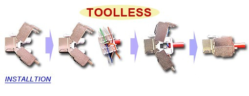 Keystone Cat6A, STP, samozařezávací se zaklapnutím, stříbrný Lze zařezat kabely s vodiči o průměru AWG26-22, průměr s izolací 0,4-0,6 mm..