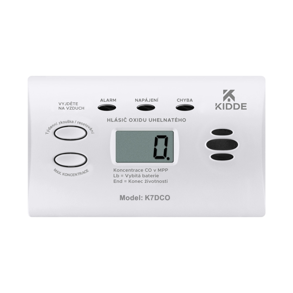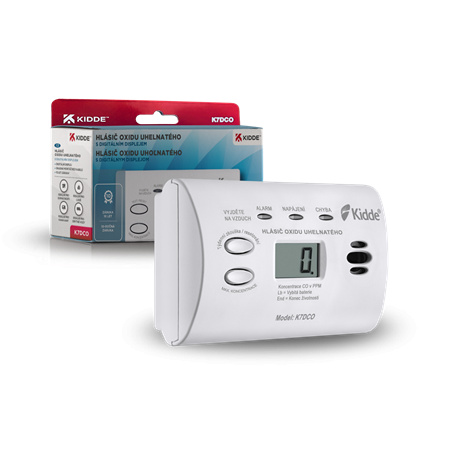 Detektor oxidu uhelnatého (CO) Kidde K7DCO průběžně monitoruje přítomnost jedovatého oxidu uhelnatého v domácnostech nebo provozovnách, a tak poskytuje ochranu před jeho smrtelnými účinky. Kromě trojice kontrolních LED indikátorů disponuje také LCD displejem, na kterém průběžně zobrazuje naměřené hodnoty CO a další stavové informace. Hlásič lze pevně instalovat na stěnu nebo pro lepší pohodlí jednoduše volně položit na stůl, regál nebo jiný vodorovný povrch. Je ideálním bezpečnostním prvkem a spolehlivou ochranou před tímto tichým zabijákem nejen pro domácnosti, ale i v pronajatých ubytovacích prostorách, na dovolených, při cestování obytnými vozy, karavany, přívěsy nebo čluny. Schválením odpovídá nejnovějším normám ČSN -EN50291:2018 pro domácí detektory oxidu uhelnatého.