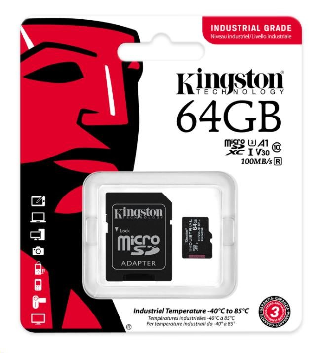 Popis Kingston MicroSDXC karta 64GB microSDXC Industrial C10 A1 pSLC Card + SD Adapter