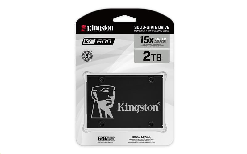 KC600 značky Kingston je SSD s plnou kapacitou navržený pro pozoruhodný výkon a optimalizován k zajištění schopnosti funkčního systému reagovat s neuvěřitelnou dobou bootování, nahrávání a přenosu. Dodáván je ve velikosti 2,5“ s využitím rozhraní SATA Rev 3.0 se zpětnou kompatibilitou. KC600 využívá nejnovější technologii 3D TLC NAND, zatímco současně podporuje plně zabezpečenou sadu, která zahrnuje 256bitové hardwarové kódování AES, TCG Opal a eDrive. Má rychlosti čtení/zápisu až 550/520 MB/s* k účinnému ukládání Vašich dat až do velikosti 2 TB.** Dostupný je v sadě, která Vám poskytne vše, co potřebujete pro hladkou a snadnou instalaci a aktualizaci Vašeho stolního nebo přenosného počítače.