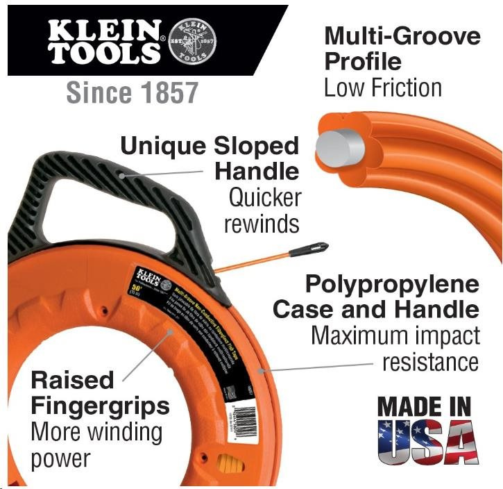 Protahovací pero Klein Tools, sklolaminátové jádro, délka 15m, průměr 4.8mm