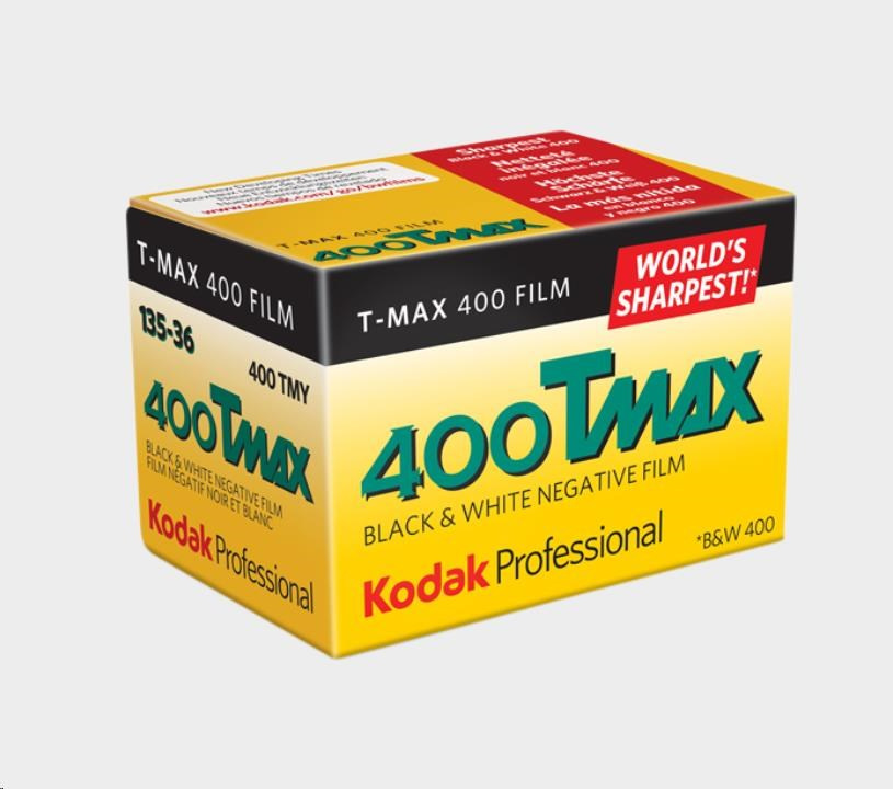 Kodak's Professional T-Max 400 is a high-speed panchromatic black and white negative film featuring a unique T-GRAIN emulsion to provide a very fine grain structure with a high degree of sharpness and edge detail. It has a nominal sensitivity of ISO 400/27° along with a wide exposure latitude for rating the film up to EI 1600 and push developing. Its versatility benefits working in difficult lighting conditions and with moving subjects, and its fine grain profile, broad tonal range, and high resolving power benefit scanning and enlarging applications. Additionally, the film is well-suited to scientific and biomedical work, especially when fluorescence in photography is required.