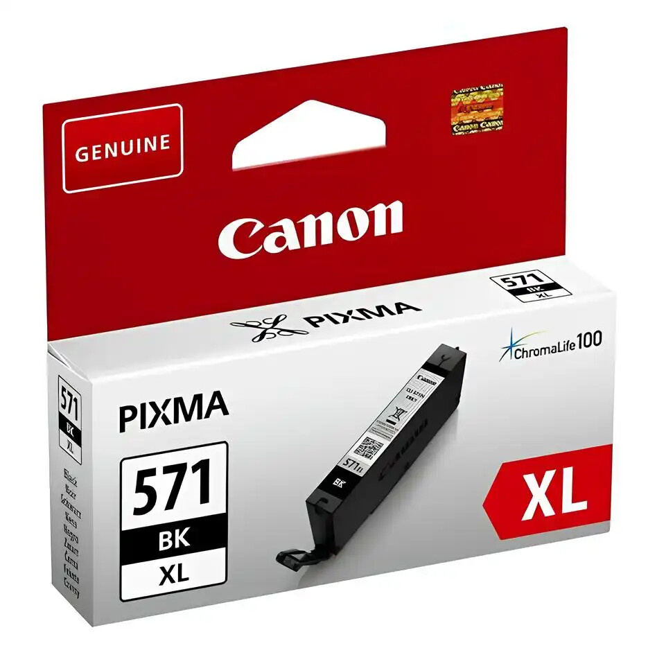 Inkoustová náplň Canon CLI-571BK XL je určena pro tisk kvalitních textových dokumentů a fotografií. Jedná se o originální černou inkoustovou kazetu s vysokou výtěžností, která poskytuje až 810 stran při 5% pokrytí.