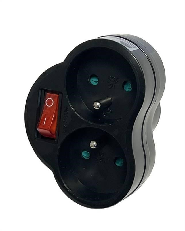 - Typ: rozbočka 1× kulatá + 2× plochá zásuvka
