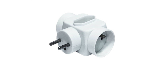 2x kulatá zásuvka + 1x plochá zásuvka, 250 V~/ 2×16A 1x2,5A Dětská ochrana-clonky.