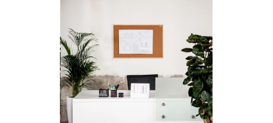Korková nástěnka AVELI má vysoce odolný povrch proti poškození při práci s napínáčky a špendlíky. Má lehkou konstrukci s dřevěným rámem.