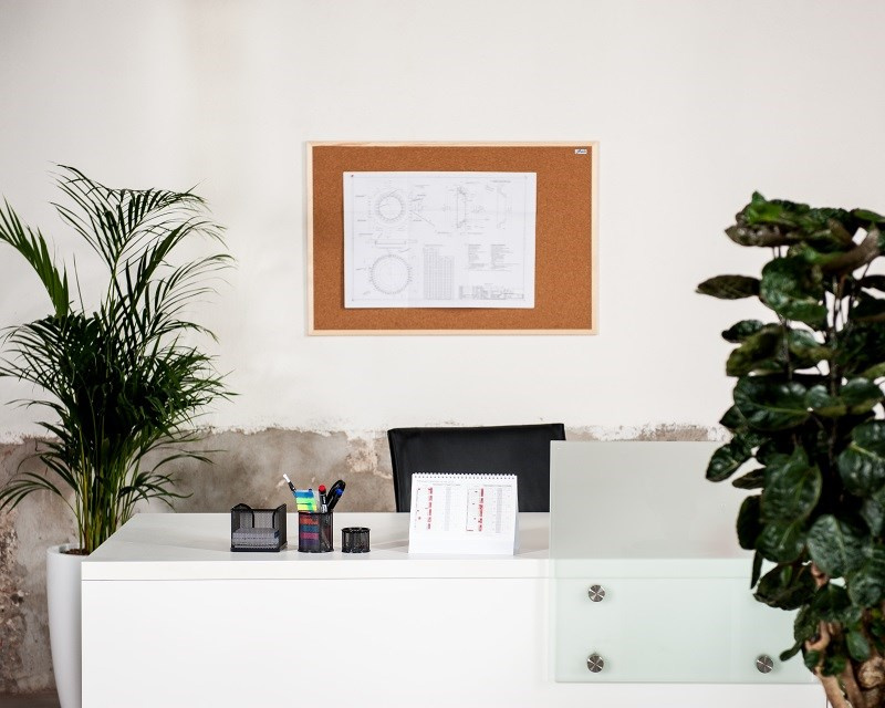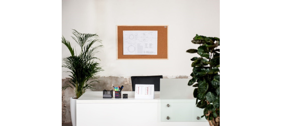 Korková nástěnka AVELI má vysoce odolný povrch proti poškození při práci s napínáčky a špendlíky. Má lehkou konstrukci s dřevěným rámem.