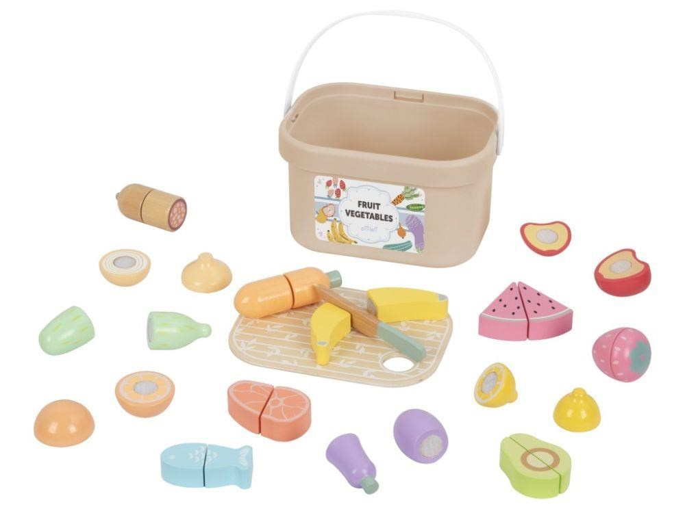 Sada dřevěných krájecích potravin uložená v praktickém a snadno přenosném boxu 3v1 umožní dětem přichystat hostinu doma i na návštěvě. Krájecí ovoce, zeleninu a další potraviny mohou děti pomocí dřevěného nože krájet (porcovat) na poloviny a pomocí suchého zipu poloviny opět spojovat. S krájecími potravinami si děti vyzkouší krájení bezpečným dětským způsobem a zdokonalí své dovednosti.. NoName není konkrétní značka nebo výrobce, ale spíše označení pro generické produkty, které nejsou spojeny s konkrétní známou značkou. Dodavatel: eD system a.s., Novoveská 1262/95, 709 00 Ostrava - Mariánské Hory, CZ