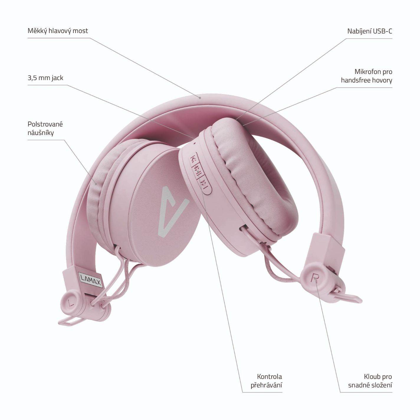 Popis LAMAX Beat Blaze2 náhlavní sluchátka, USB-C - růžová