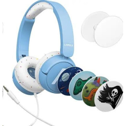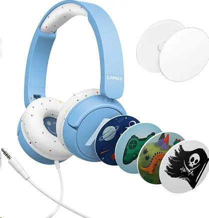 Dětská náhlavní sluchátka LAMAX SoundKid1, ochrana sluchu, omezení hlasitosti 85/94 dB, kvalitní zvuk, mikrofon, měkké hypoalergenní náušníky, druhá sada magnetických klipů, sada 4 motivů samolepek, pozlacený 3,5mm jack.Více