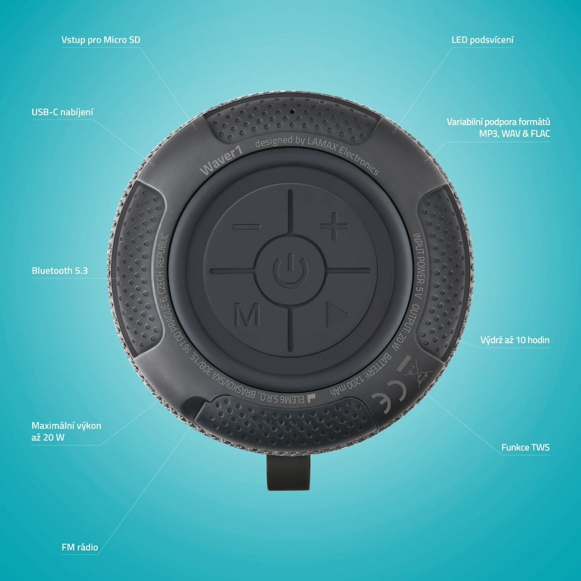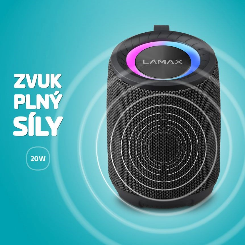 Obklop se hudbou. Díky parťákovi, jako je LAMAX Waver1, tě doslova pohltí. I když je malý velikostí, uvnitř něj dřímá obr. Propoj ho bezdrátově přes Bluetooth 5.3 se zařízením, kde máš svůj playlist, podcasty nebo třeba film a místnost naplní dokonalý čistý vyrovnaný zvuk s bohatými basy a jasnými výškami. Připojit můžeš klidně i microSD kartu a na formátu souboru nezáleží, zařízení jich podporuje celou řadu. Chceš víc? TWS funkce to zařídí, umožňuje připojit další reprák. Výkon 20 W a baterie na 10 hodin ti hravě pomůžou ozvučit i menší večírek a LED efekt ještě dokreslí atmošku. Když je třeba doplnit šťávu, USB-C je ready. Určitě si zamiluješ i parádní kompaktní ergonomický koženkový design a snadné intuitivní ovládání. Ať jdeš kamkoliv, svůj reprák vezmeš pohodlně s sebou a zvládne i nějaké to vlhko třeba v létě u vody, má voděodolnost IP65.