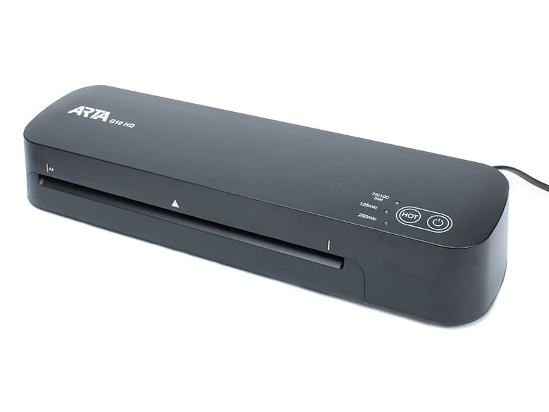 Laminátor dokumentů s možností volby tloušťky laminované fólie. Model ARTA G10 HD A4 umožňuje laminování dokumentů, které mají maximální šířku 235 mm (A4), s fóliemi o tloušťce 75 až 250 mikronů. Doba potřebná k ohřátí je pouze 60 sekund. Je snadno použitelný, malý, kompaktní a vyniká přítomností inteligentní funkce automatického vypnutí po 30 minutách nečinnosti. Součástí je také možnosti uvolnění zaseknutých dokumentů.. , ,