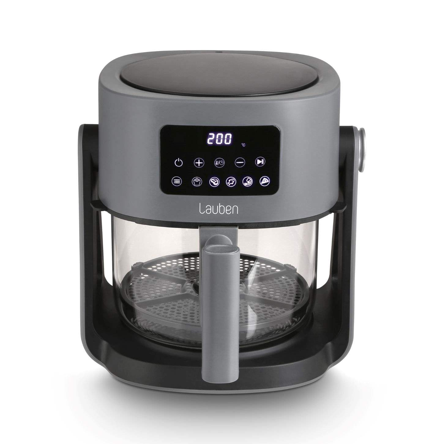 Zdravé vaření nebylo nikdy snazší a nemusíte se vzdávat ani oblíbených smažených dobrot. Horkovzdušná fritéza s grilem Lauben Glass&Grill Air Fryer 3in1 5500BG přináší zcela novou dimenzi přípravy pokrmů využívající až o 80 % méně tuku. Unikátní skleněný koš s viditelností 360° zajišťuje ničím nenarušenou chuť a vůni jídla, zároveň umožňuje jeho snadnou kontrolu během přípravy, a to i díky vnitřnímu osvětlení. Vaření urychluje 6 přednastavených programů, ale teplotu a čas lze nastavit i manuálně na digitálním dotykovém displeji. O rovnoměrné propečení se stará infračervené světlo, pomocí otočné horní části o 180° spolu s použitím přiložené grilovací či hluboké pánve získáte více možností přípravy. Fritovací koš je chráněn bezpečnostním krytem proti popálení, pachový filtr zase chrání domácnost před nepříjemným odérem. Čas ušetříte při vaření i údržbě, příslušenství stačí jen vložit do myčky. Praktické rady pro použití přináší video tutoriál.