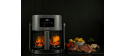 Horkovzdušná fritéza s grilem díky vysokorychlostní 360° cirkulaci vzduchu ušetří čas strávený v kuchyni, energii i zdraví. Nastartuje vaši cestu lepšího životního stylu, neboť oblíbená smažená jídla připraví s využitím až o 80 % menšího množství tuku. Rovnoměrného propečení dosahují pokrmy pronikáním infračerveného světla. Ještě více možností přípravy jídel poskytuje unikátní technologie umožňující otáčení horní části o 180°, a to především ve spojení s grilovací a hlubokou pánví, jež jsou součástí balení.